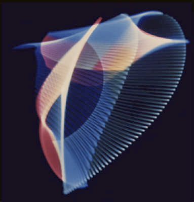 Laposky took those electrons and used them to model mathematical formulas. He also plugged them into various sine wave generators. Then he sat back and let the machines charge the screen.